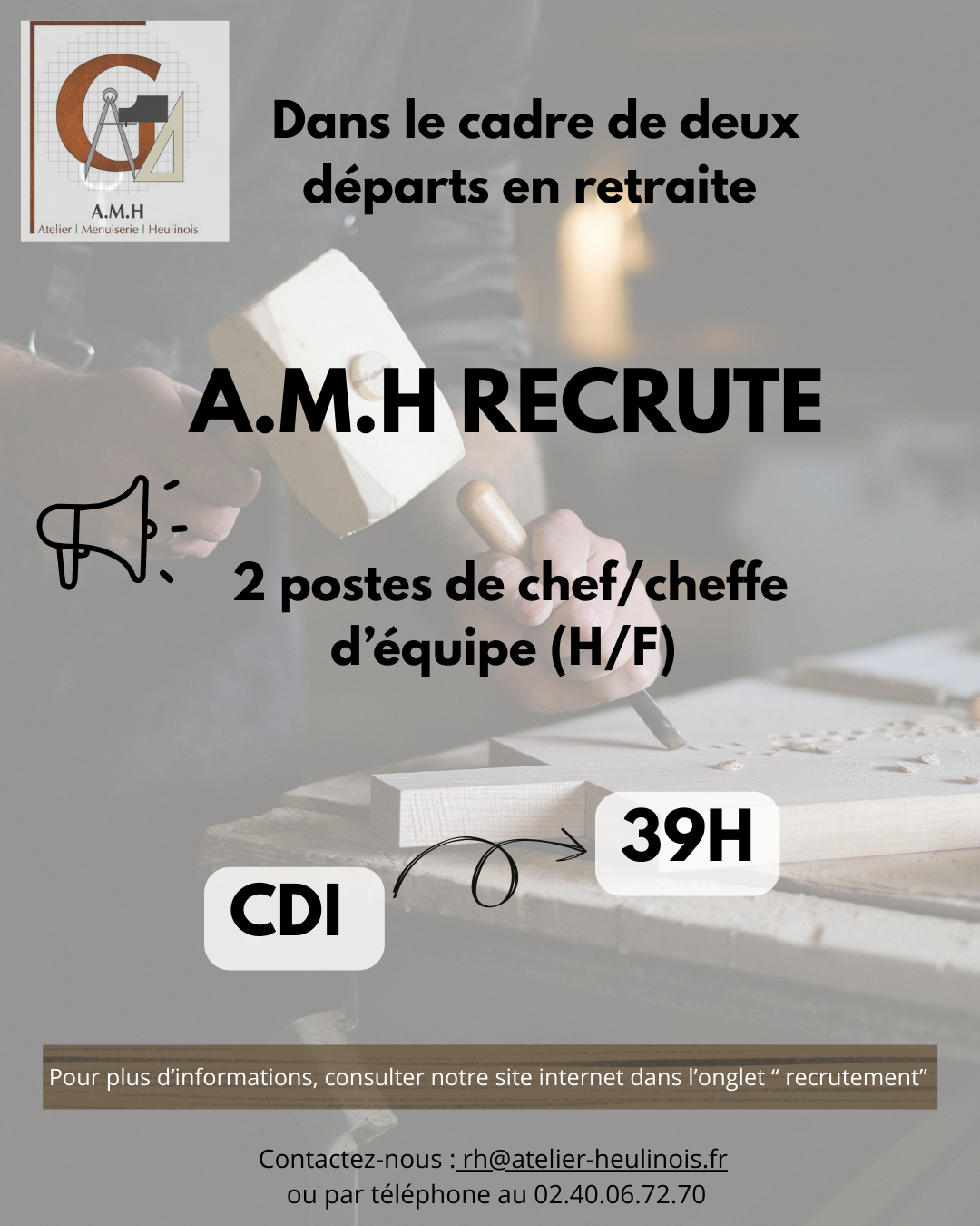 Une première expérience en encadrement serait appréciée.Formation CAP/BP en menuiserie ou équivalent,